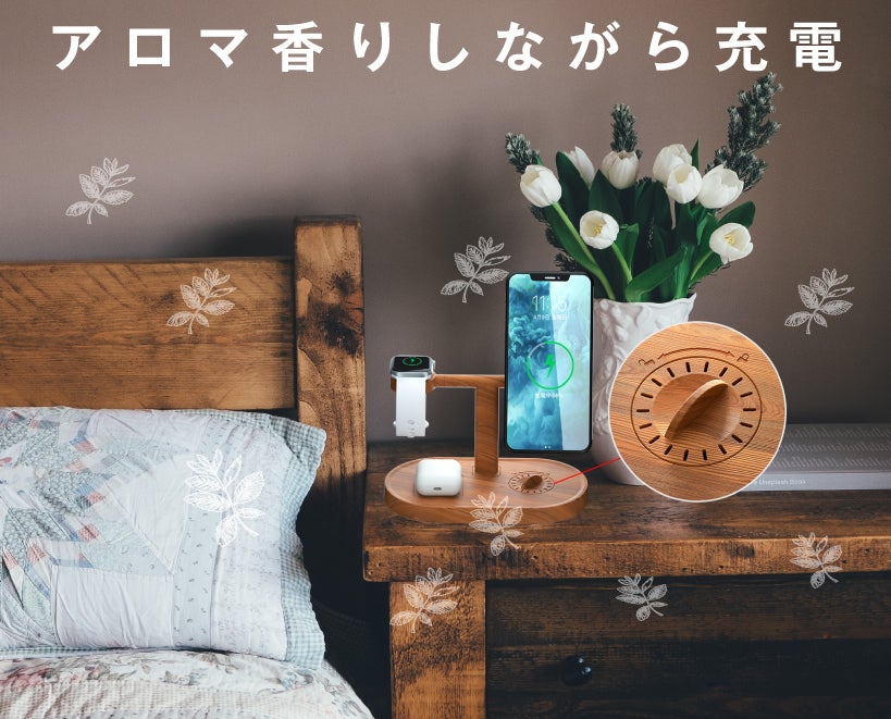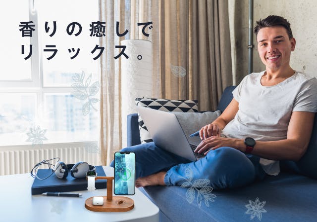 朝起きたときにと「疲れが取れない」と感じたり、長時間のテレワークで「疲れやすい」と感じたり…。そんなときに役立つのが香るワイヤレス充電器。