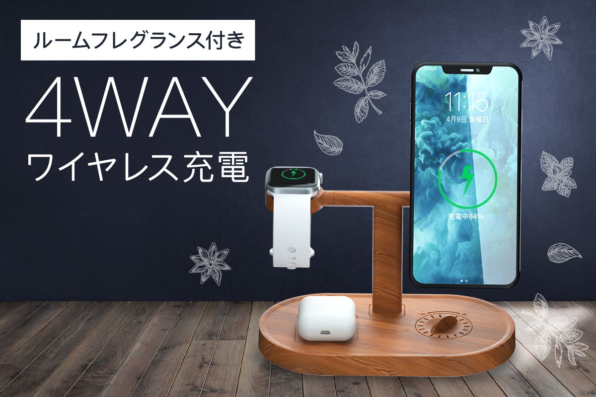 【香る 4WAY充電器】マグネットワイヤレス急速充電!ルームフレグランス機能付き