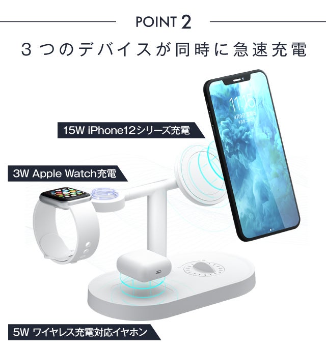 iPhone12シリーズ/Apple Watch/Airpodsが同時に充電可能!