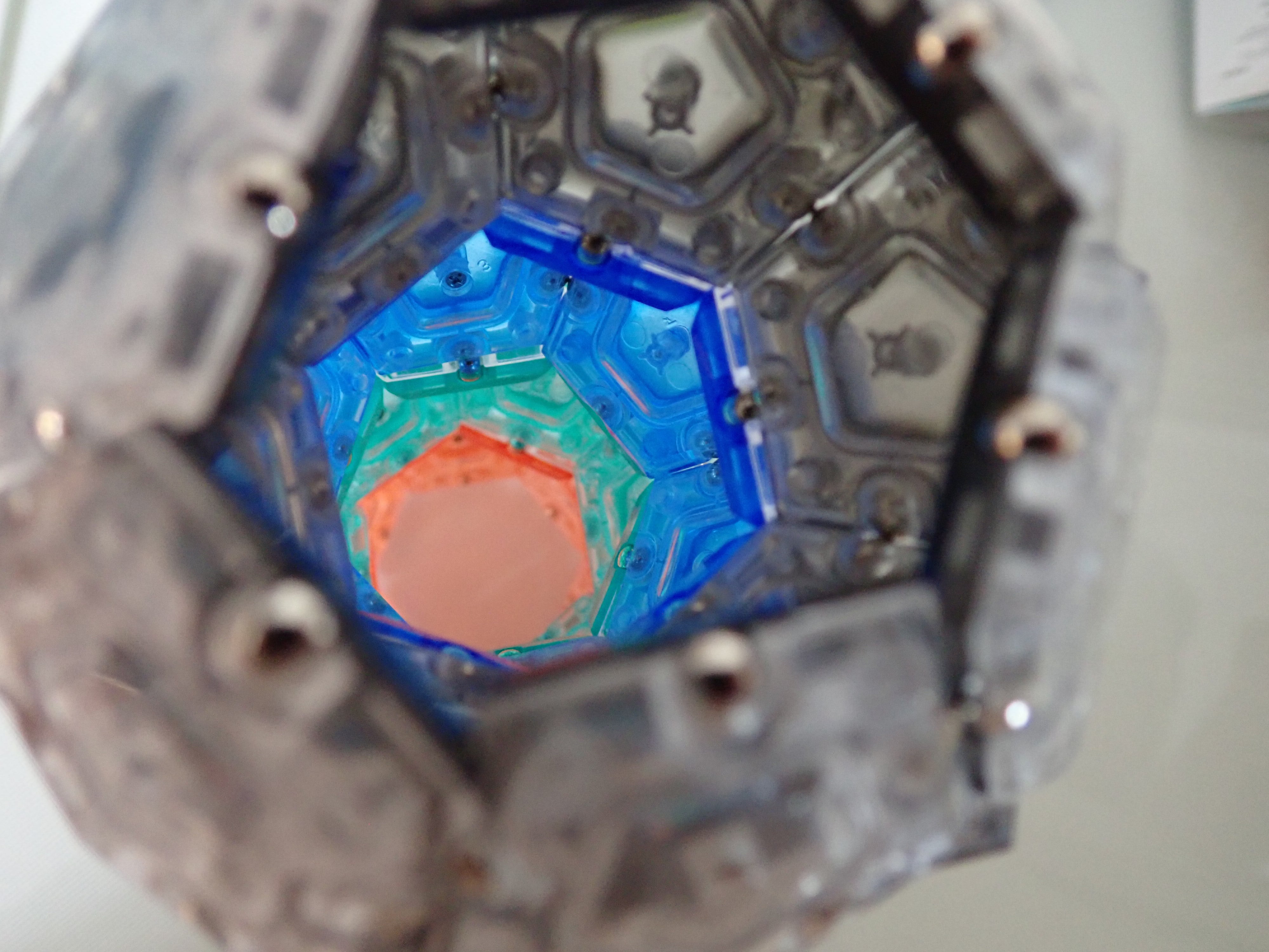 写真は、真ん中に空洞ができるように組み立てたものをカチッカチッと4色重ねたものです。