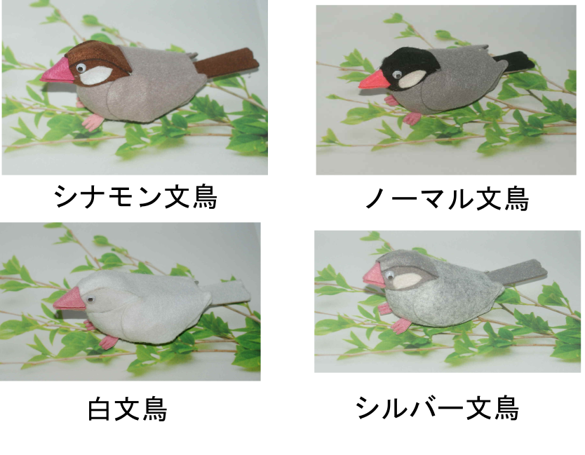 ペーパークラフトの芯にフェルトを貼ったぬいぐるみ感覚の小鳥のキットです。
