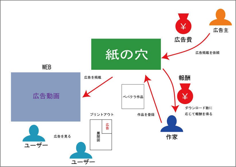 ペーパークラフト作家に収益が入る仕組みはないかと考えた所、データーに広告を入れて広告収入を得る方法を思いつきました。