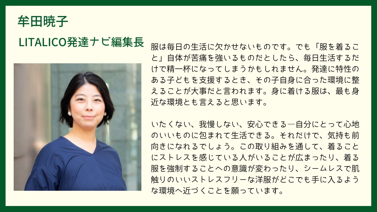ぜひ、感覚過敏がある方も、感覚過敏でない方もご覧いただければ嬉しいです。「快適な衣服とは何か?」をみなさんと一緒に考えていきたいです。