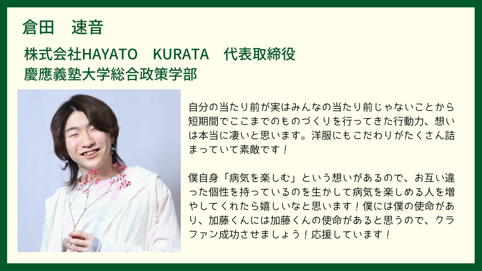 「『KANKAKU FACTORY』の立ち上げクラファンに支援したのは私だ」「『KANKAKU FACTORY』の1作品目のパーカーを購入したんだよ!」といつか自慢できるような、そんなブランドにしていきたいと思っています。
