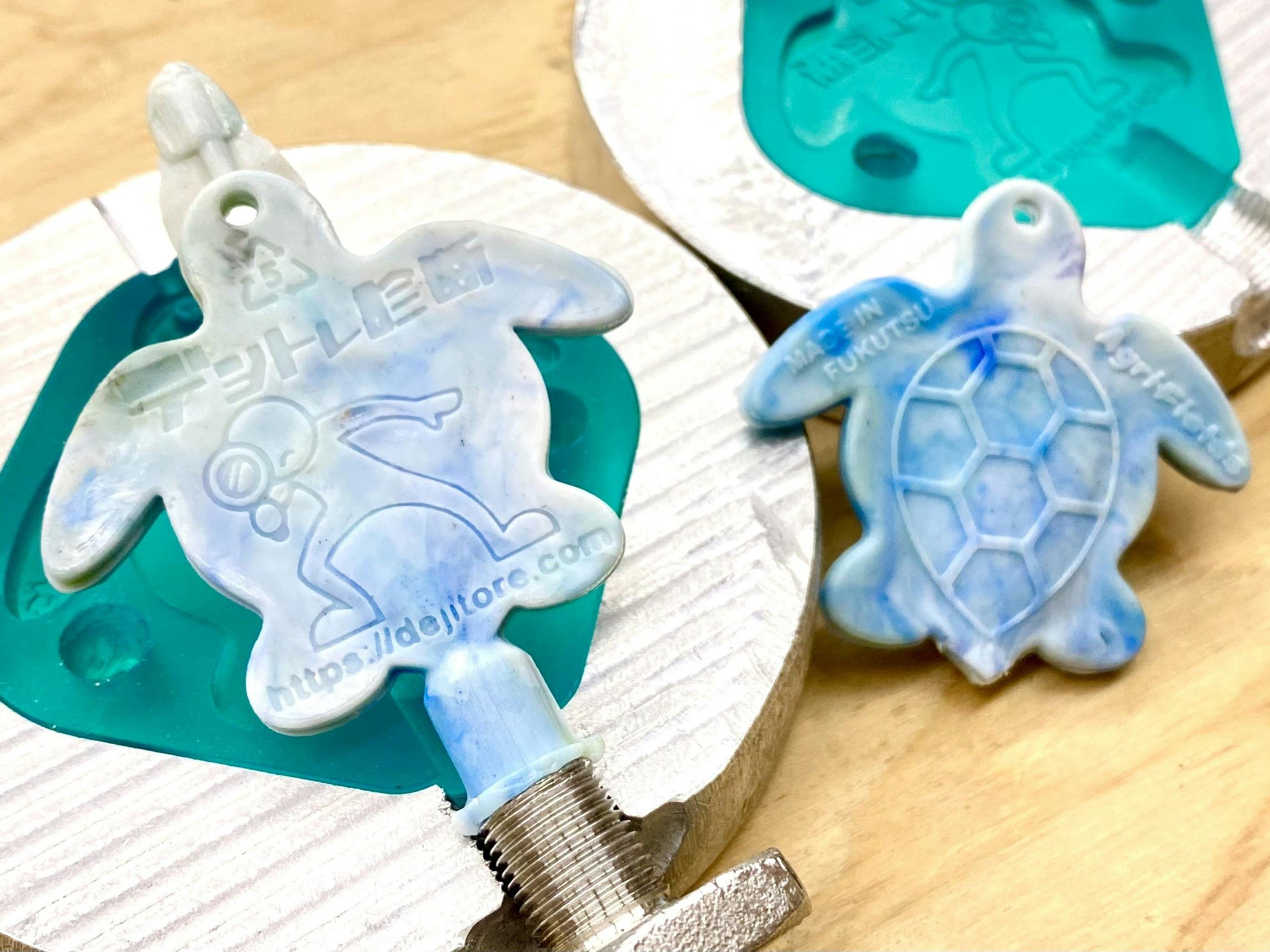 廃プラうみがめキーホルダー2021:デジトレ診断ロゴデータを入稿していただき、弊社側でデザイン⇒3Dプリンターによる試作を行いました。