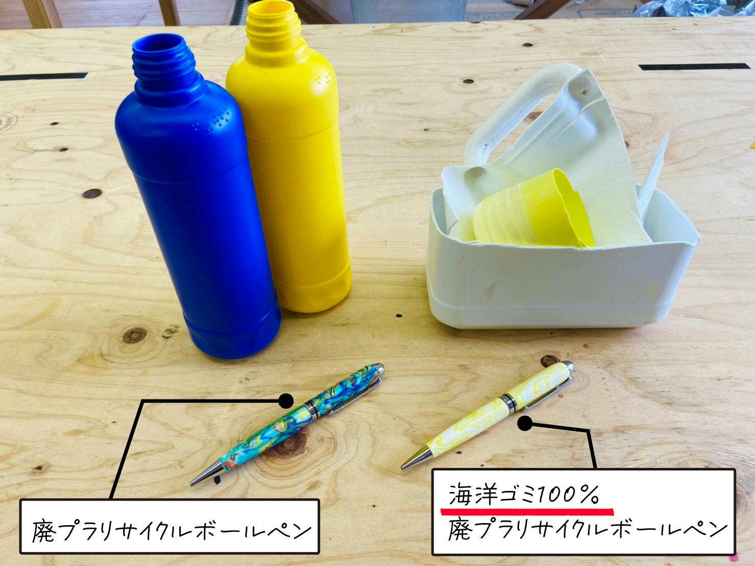 『廃プラリサイクルボールペン』『海洋ゴミ100%廃プラリサイクルボールペン』