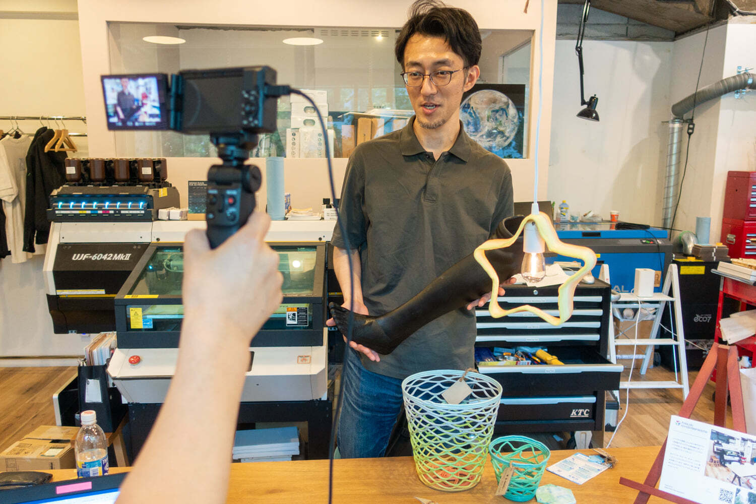 日本の事例をいくつか紹介する上で、ファブラボボホール&インスタリムの Tokushima さんにお願いし、「3Dプリンティング義足」のモックアップをお借りしたり、津屋崎ベースキャンプ(福岡県福津市)の 古川 さんから「廃プラスティックプロダクト」をお借りしたりと、多方面の協力をいただきながら実施する事ができました。