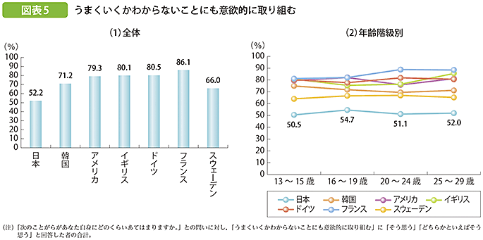 諸外国に比べて、日本の若者がうまくいくかわからないことに対して消極的であることがわかります。
