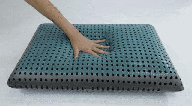 低反発枕はフィット感があり密着する面積が大きいため本来なら熱がこもりやすいのですが、冷感ジェルに加え、無数の通気孔を施すことで放熱性を高め問題を解決しました。