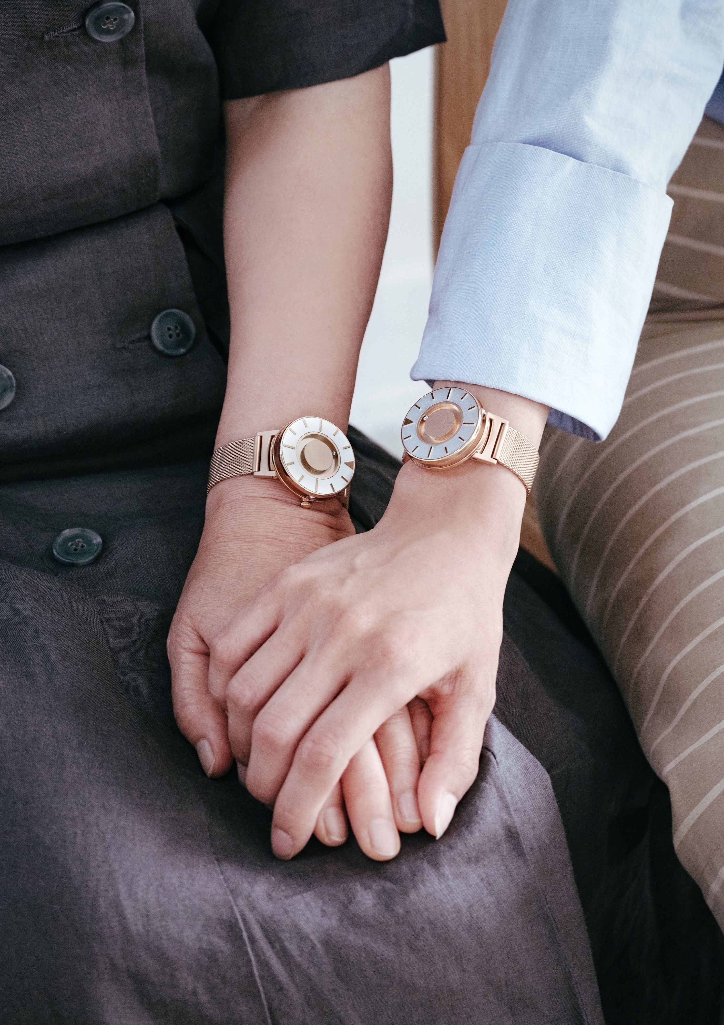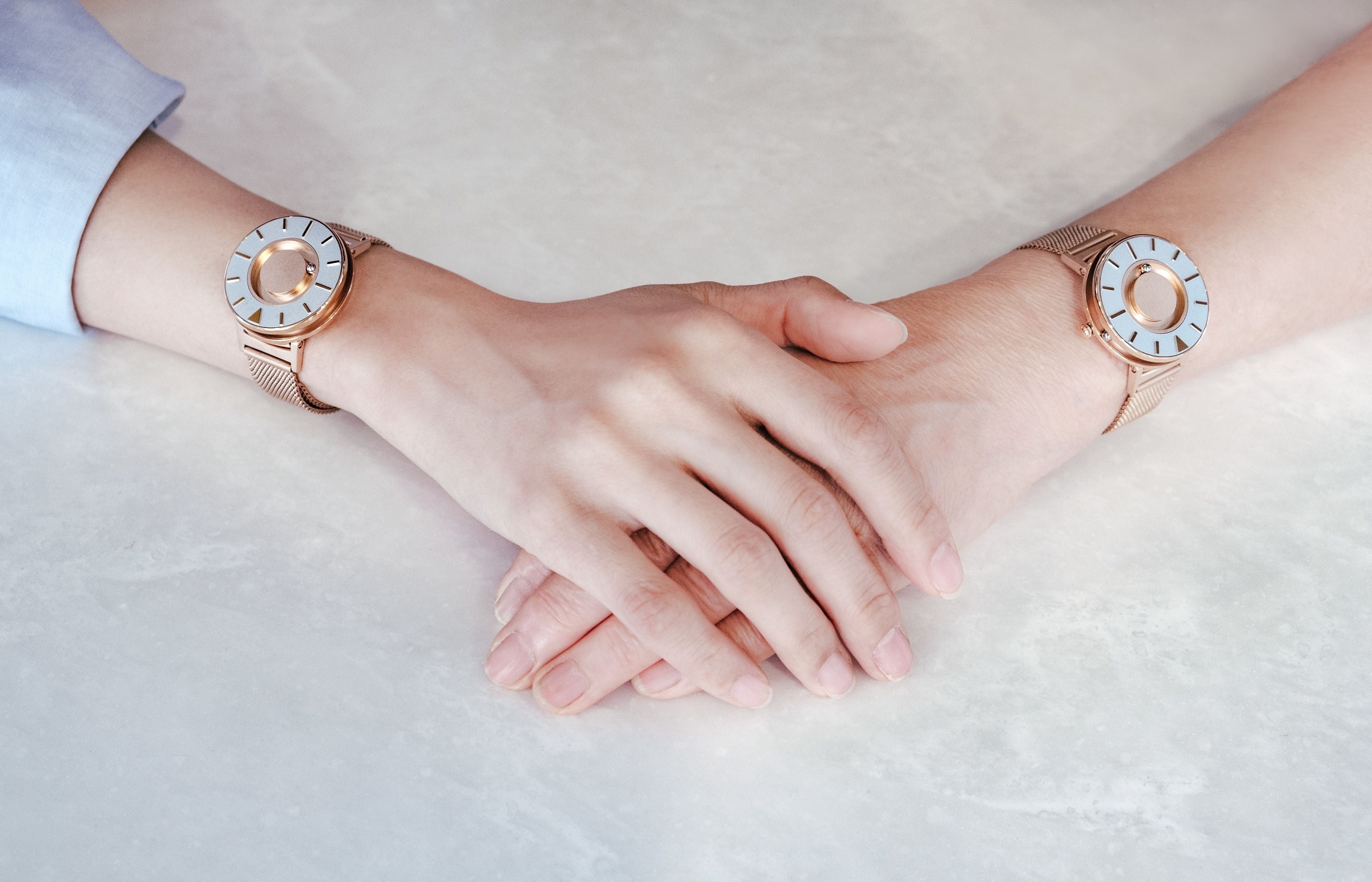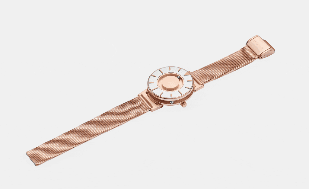 小さいサイズの時計が欲しい、おしゃれな色がほしいというお問い合わせがたくさんありました。 触って時間を確認するのに支障がない程度で、サイズを小さくし、新しい色のローズゴールドを追加してスモールブラッドリーローズゴールドが完成しました。
