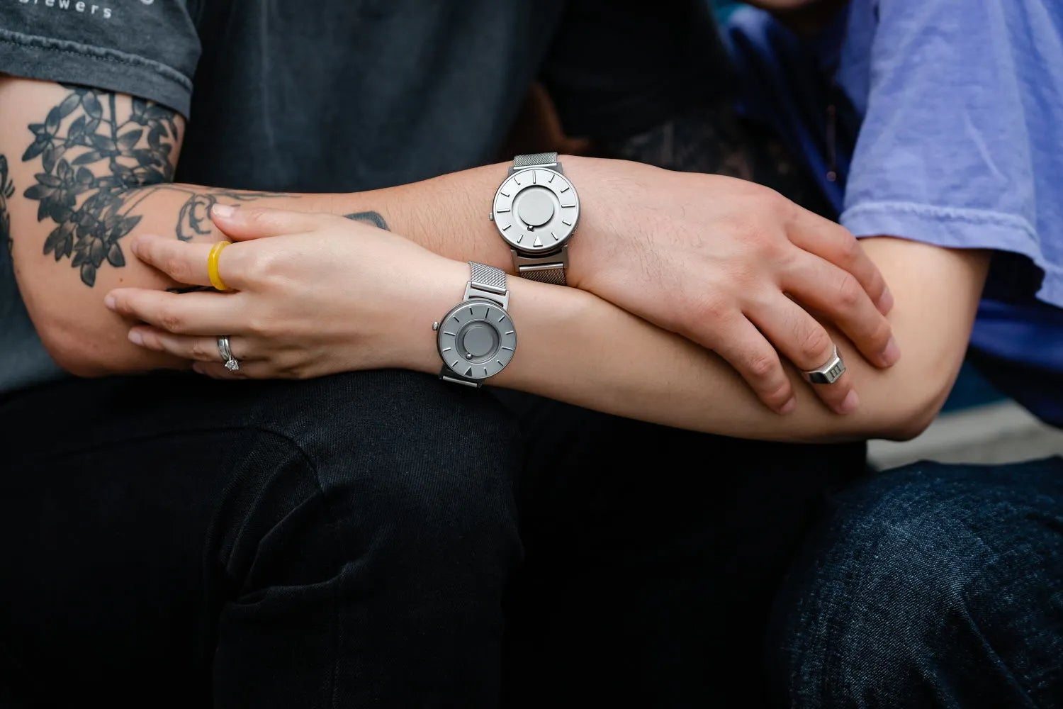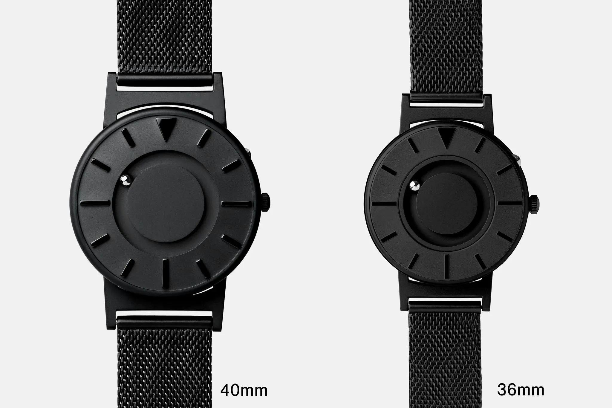 40mm 「さわる時計 Bradley」 のBradley Mesh SilverやBlack製品は、定番のベストセラー時計です。マットで軽いチタンボディと丈夫なステンレスメッシュストラップとして長年愛されています。CAMPFIREクラウドファンディング期間中、スモールBradley(36mm)と一緒に40mmの方もCAMPFIREでご支援ができます。 パッケージリターンをご支援される場合、40mm製品にもストラップをもう一つお送りします。