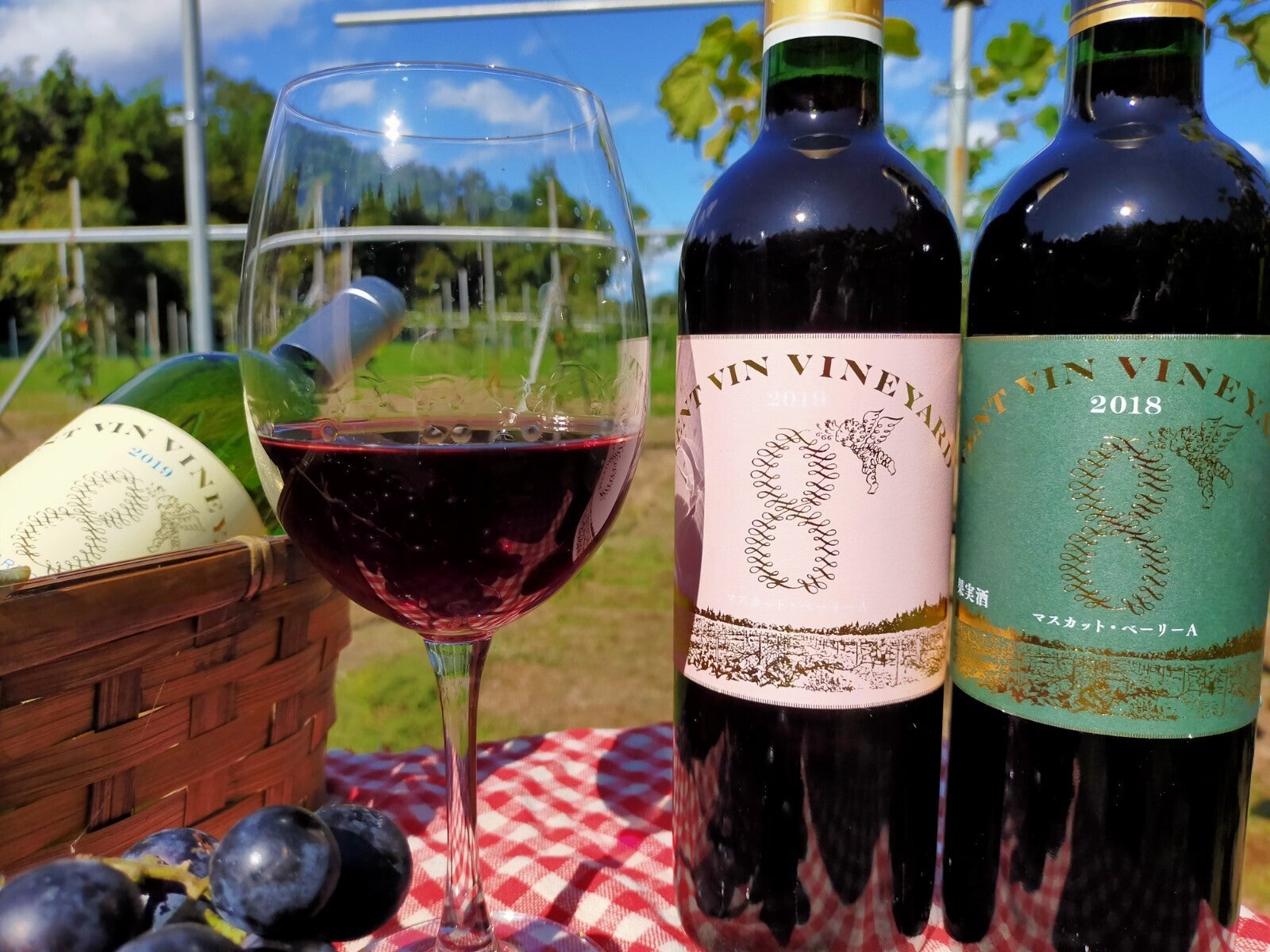 ●収穫カゴとワイン用ぶどうの収穫体験、白、赤ワイン両方セット(1本ずつ)