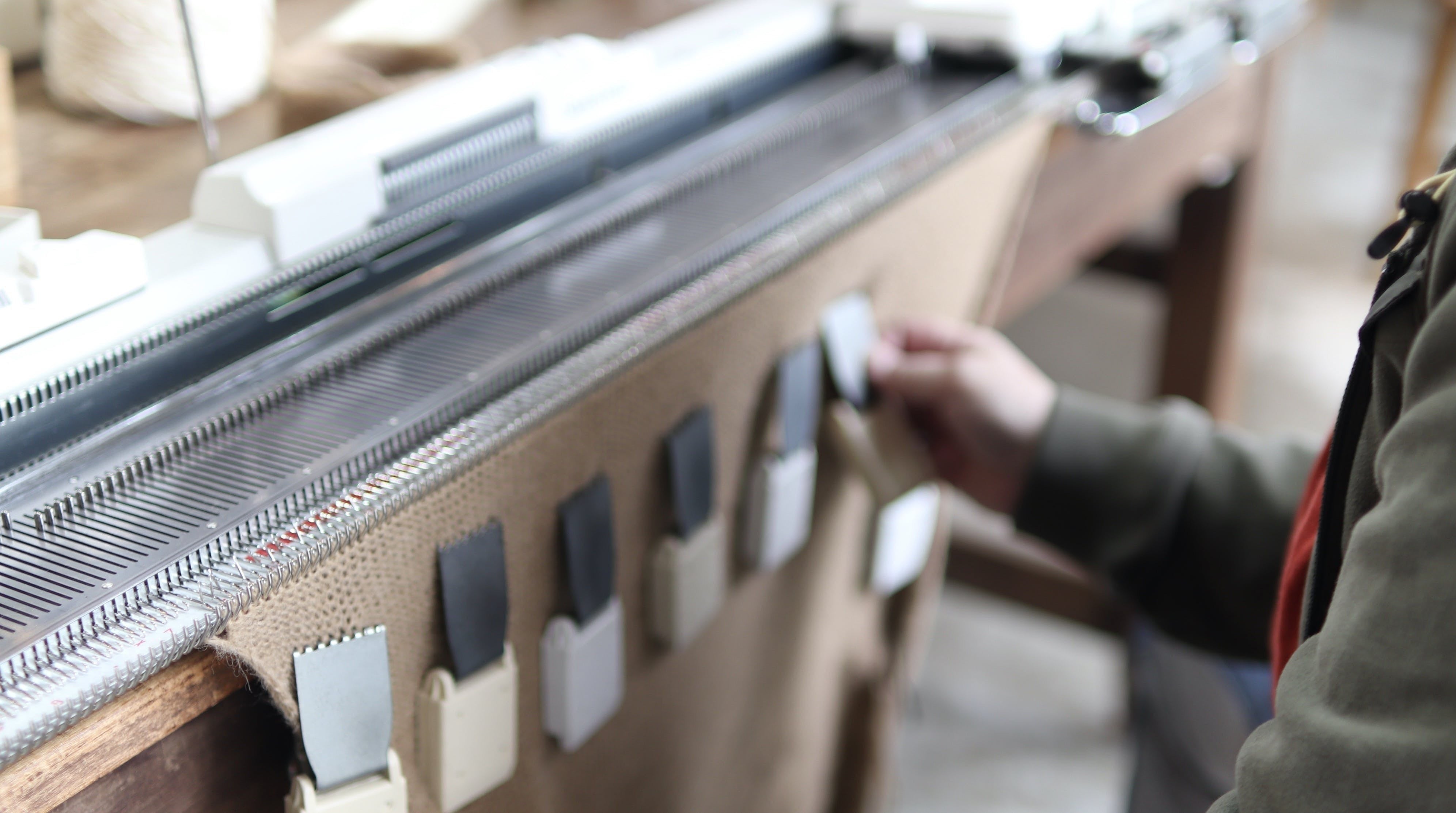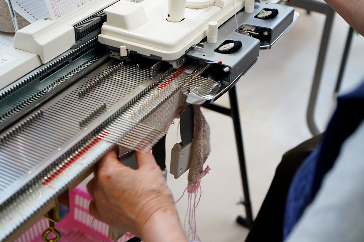 今回ご用意したリターン品は、すべて「手仕事」によって仕上げられている製品です。「手編み機」と呼ばれる昔ながらの機械を使い、在宅ワーカーさん、就労支援事業所さん、アトリエに通ってくださる作業者さんなど、たくさんの人の手を借りながら、私たちの独自の技術で1つ1つ丁寧に仕上げています。