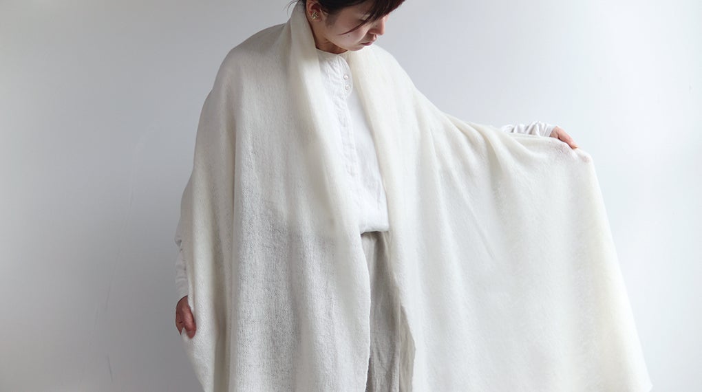 カシミヤ100%の「魔法のストール」の素材を、ヤク100%で作ったストールです。前回のクラウドファンディングで大変ご好評をいただきまして、今回も作ることにしました。