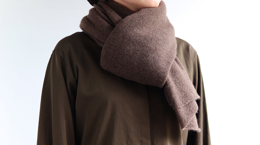 素材には、カシミヤ5%・ウール70%・ナイロン25%の糸を使用し、やわらかさと強度を出しています。1サイズ、カラーは3色ご用意しました。