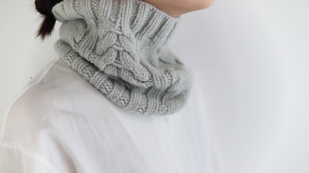 こちらのアームウォーマー・スヌード・ニット帽子に編み込まれているケーブル模様を「手編み機」で編み上げるためには、非常に高い技術が必要です。「ライク」さんと一緒に、「どのような作業ならお願いすることが可能か?」というところから一緒に考えながら、作り上げました。