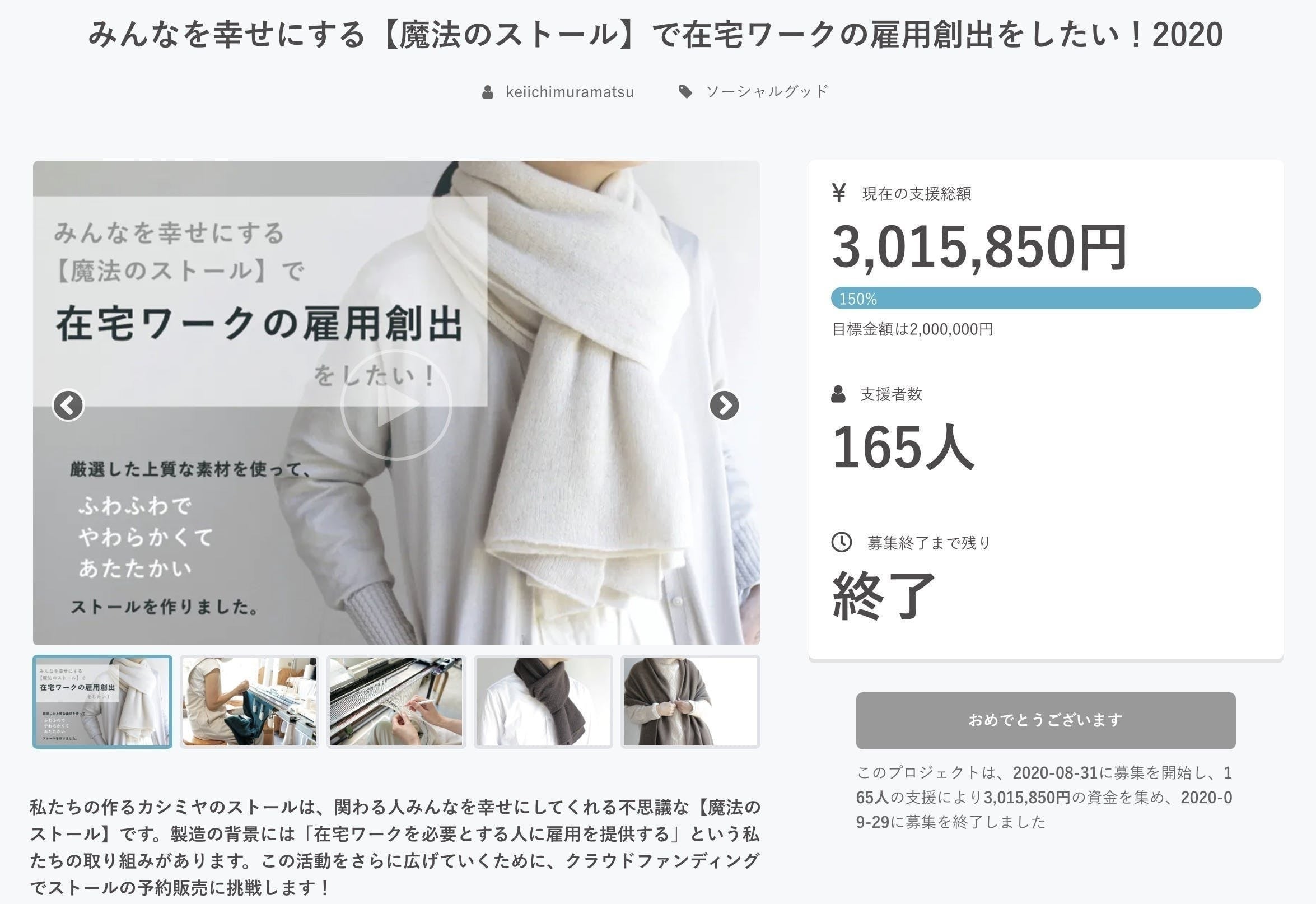 みんなを幸せにする【魔法のストール】で在宅ワークの雇用創出をしたい!2021