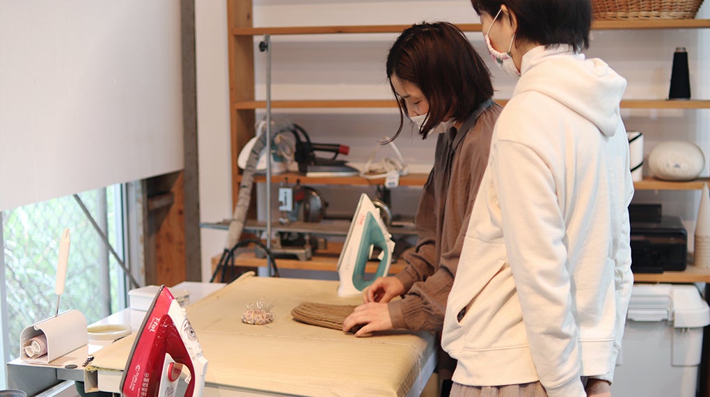 「雇用創出プロジェクト」に参加してくれている皆様にお願いしている手仕事は、誰が作業をしても仕上がりのクオリティに影響が出ないような単純作業ですが、最終段階の仕上げ作業は、私たちのブランドのプロのスタッフが手がけています。