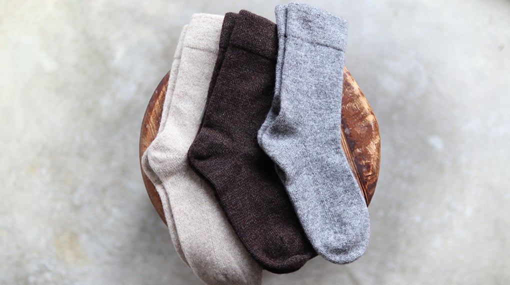 以前から「肌にやさしくあたたかい靴下がほしい」という声をいただくことが多く、ニットの靴下を作りたいと考えていました。やわらかく、締め付けすぎず、重ね履きもできて、靴が履けるように厚すぎないなど、1つ1つ丁寧に考えて作り上げました。