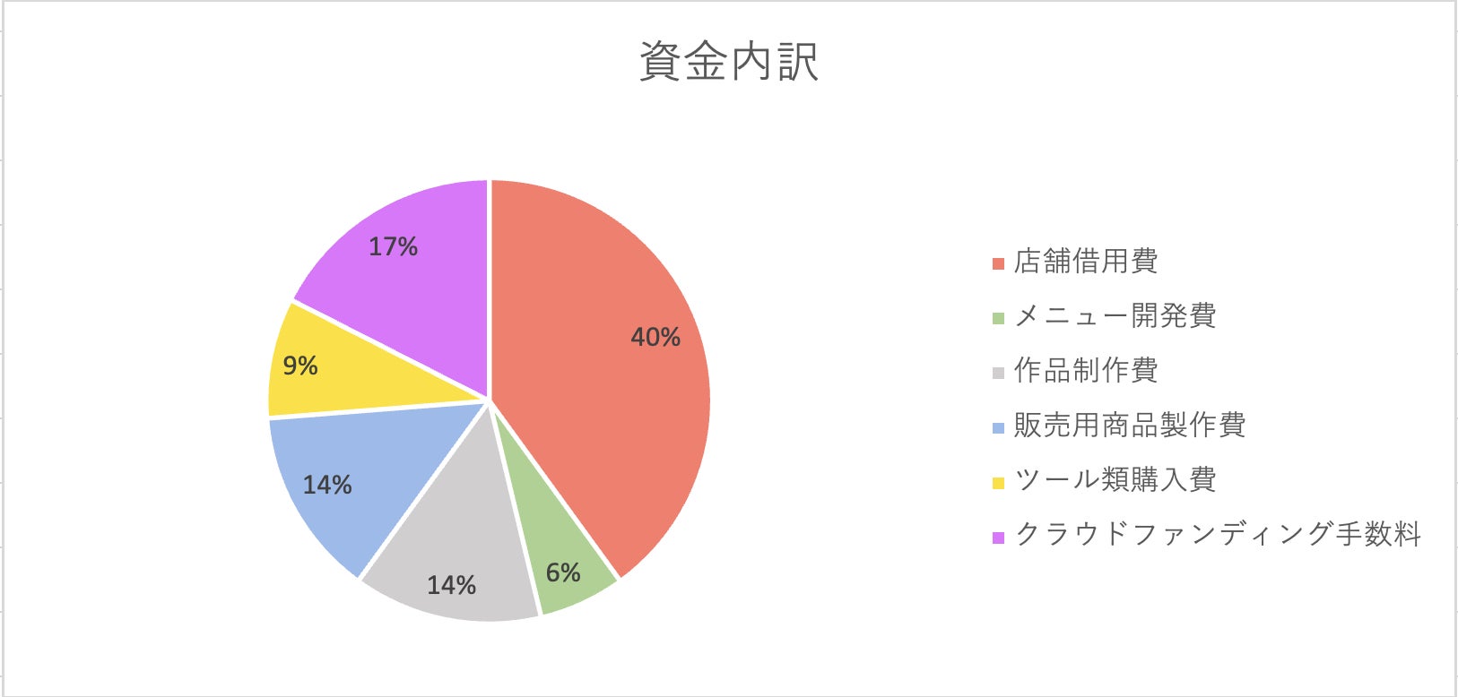 クラウドファンディングでの目標額である80万円の内訳を記載致します。主な使用途を店舗借用費(32万円)とし、残額をメニュー開発資金や運営費として使用させていただきます。