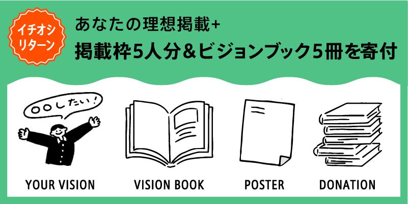 これは、みなさんに支援していただいた分だけ理想の掲載枠をドット道東が集めにいくというものです。そして理想掲載枠を支援いただいた数だけ、今回制作するビジョンブックを道東の若者に寄付したいと思います!