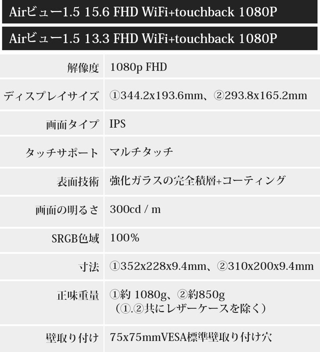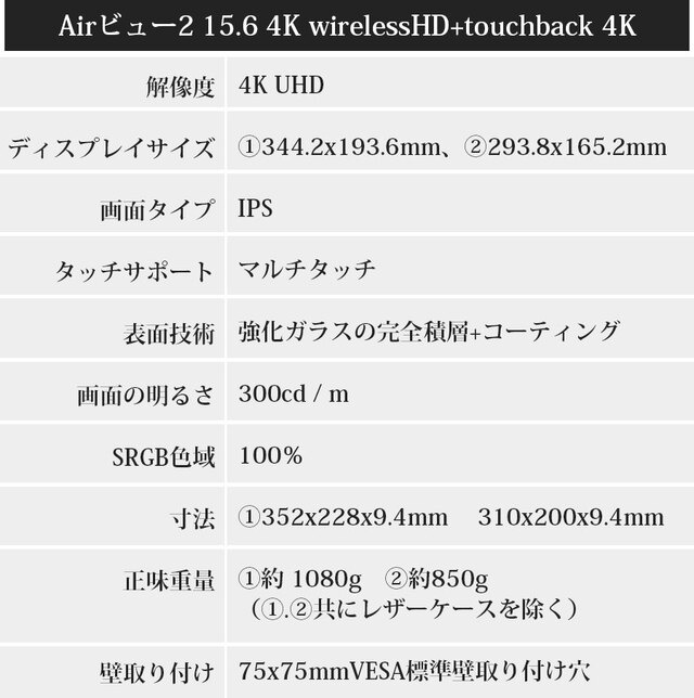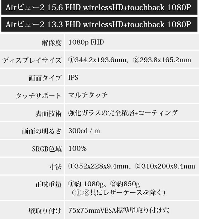 上記で紹介した4K wirelessHD+touchbackタイプを含め、サイズ・画面解像度・通信方式が異なるタイプを合わせ、全5種類となっております。