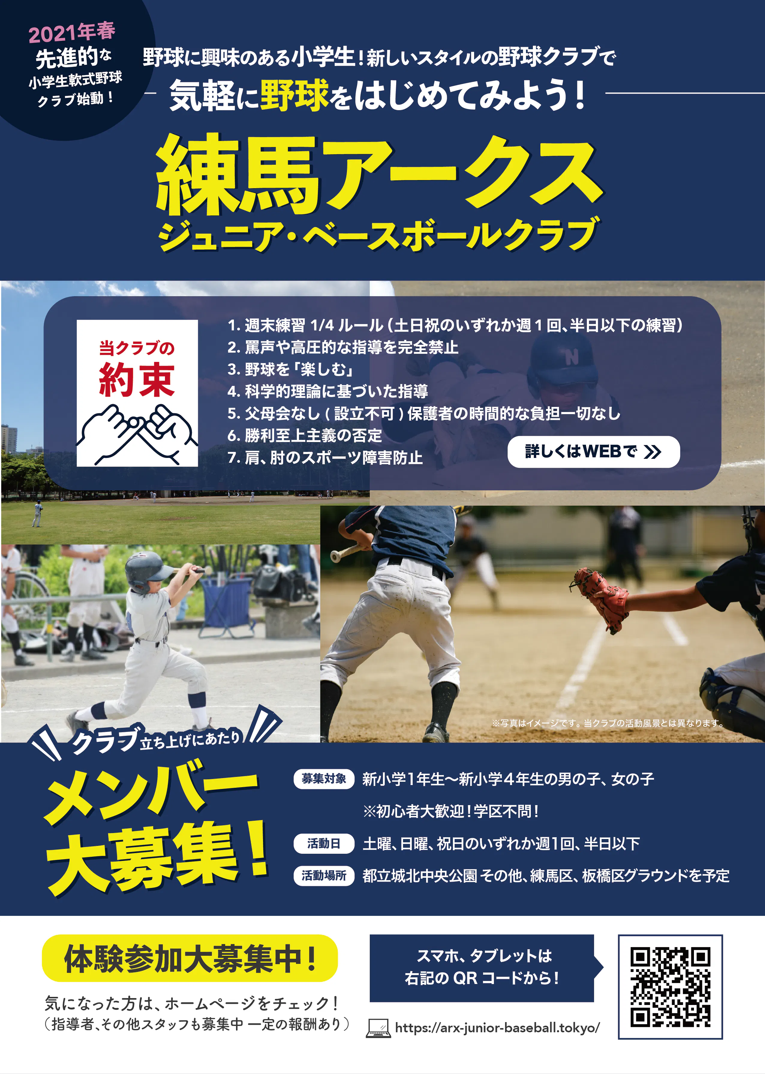 当クラブは、つくば市の春日学園少年野球クラブ様、川崎市のブエナビスタ少年野球クラブ様の先進的な理念やシステムに共鳴し、メソッド推薦を受けて、2021年3月から新たに東京都練馬区で始動した小学生の軟式野球チームです。