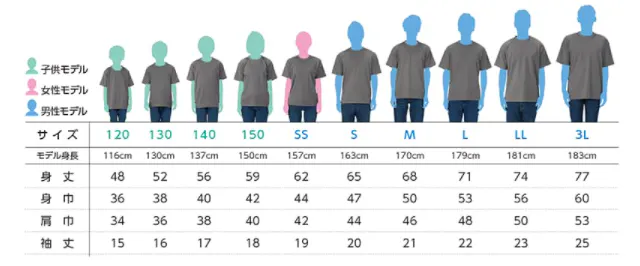オリジナルTシャツサイズ表