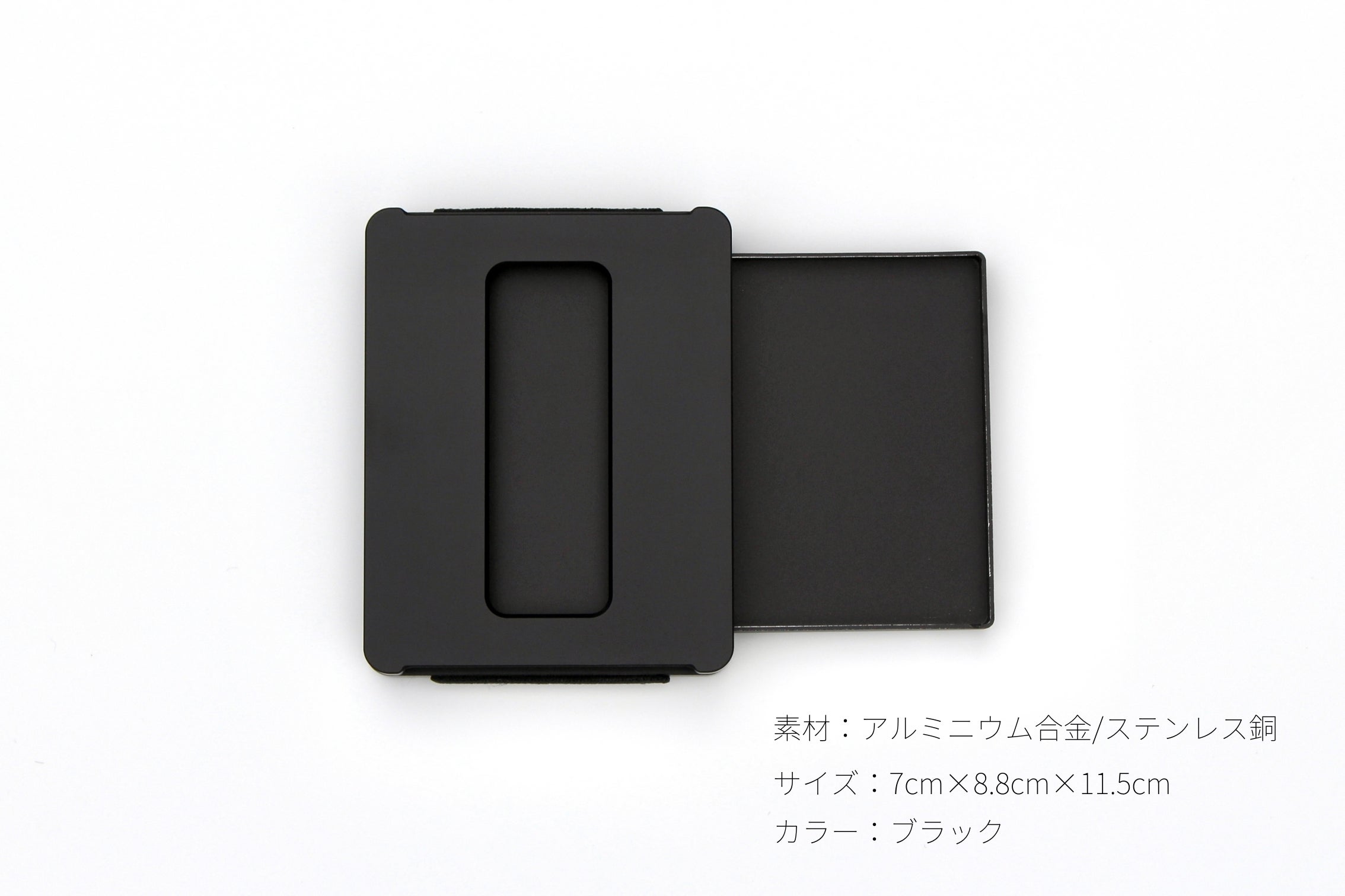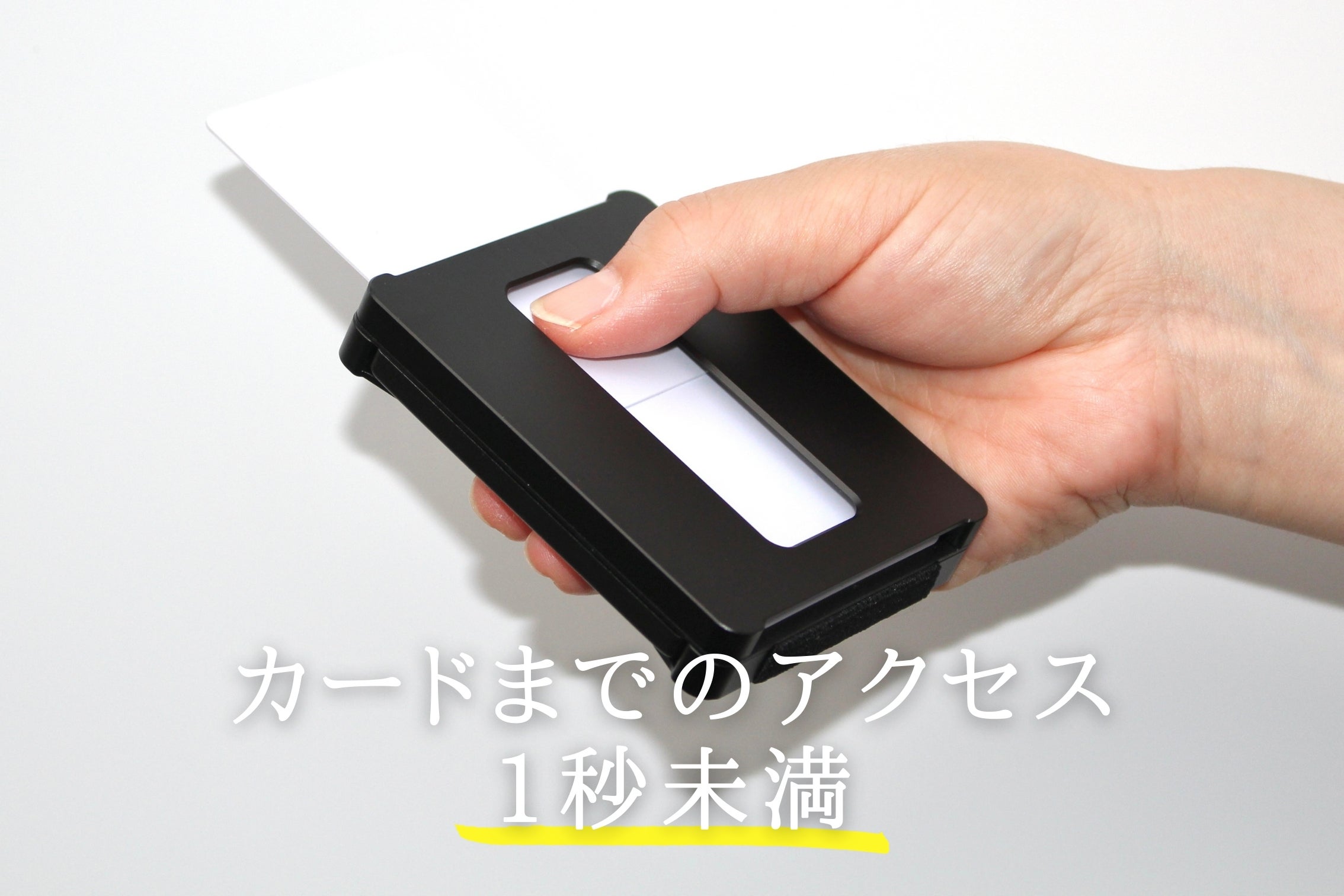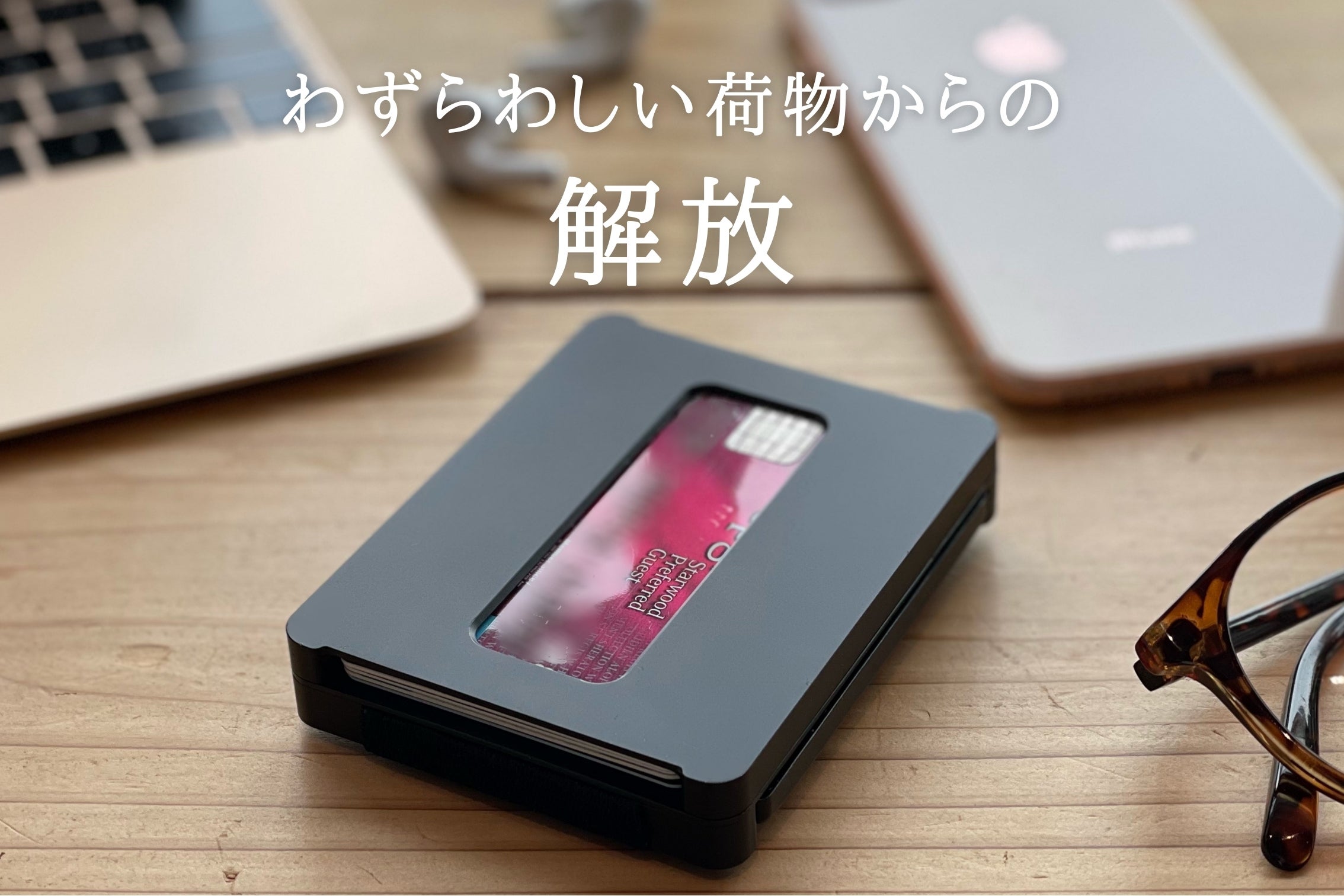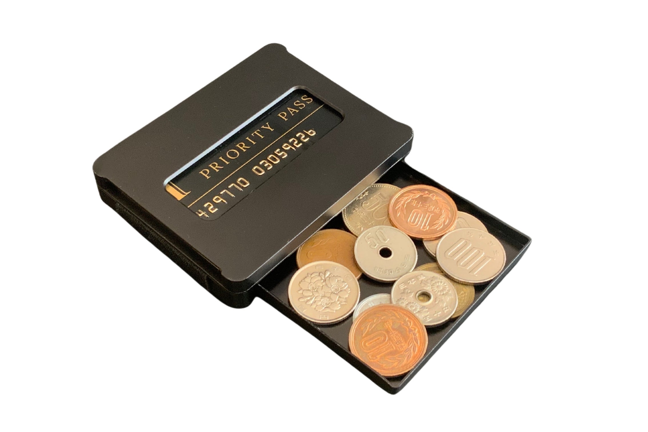 素材は高級感あるアルミニウム合金とステンレス銅。適度な重量感があり、カードだけでなく紙幣や硬貨も取り出しやすい設計になっています。