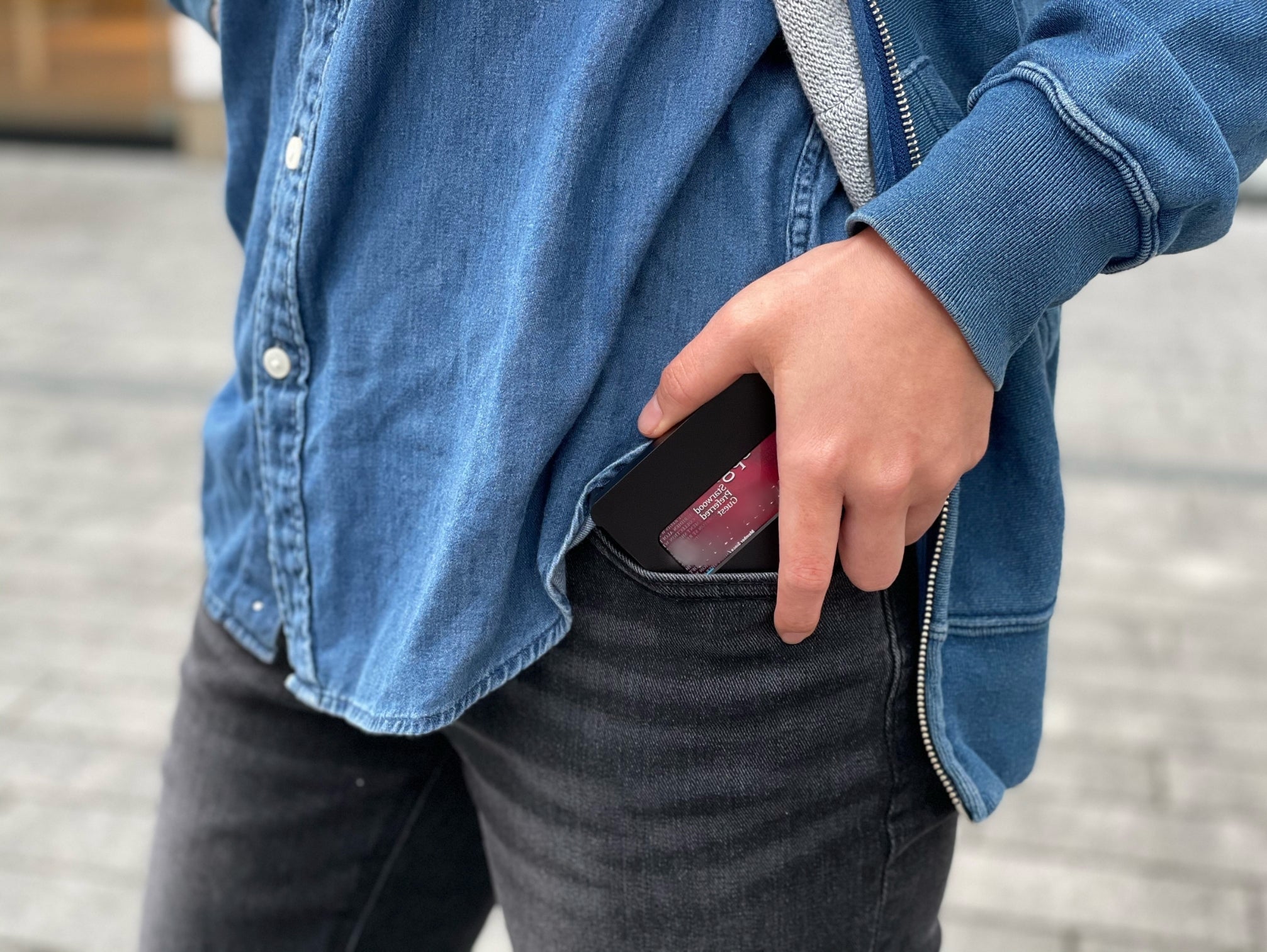 「カードのみの外出」の不安を解消できる上、バッグを持たず、ポケットをパンパンにすることもなく、手ぶらで出かけることができます。