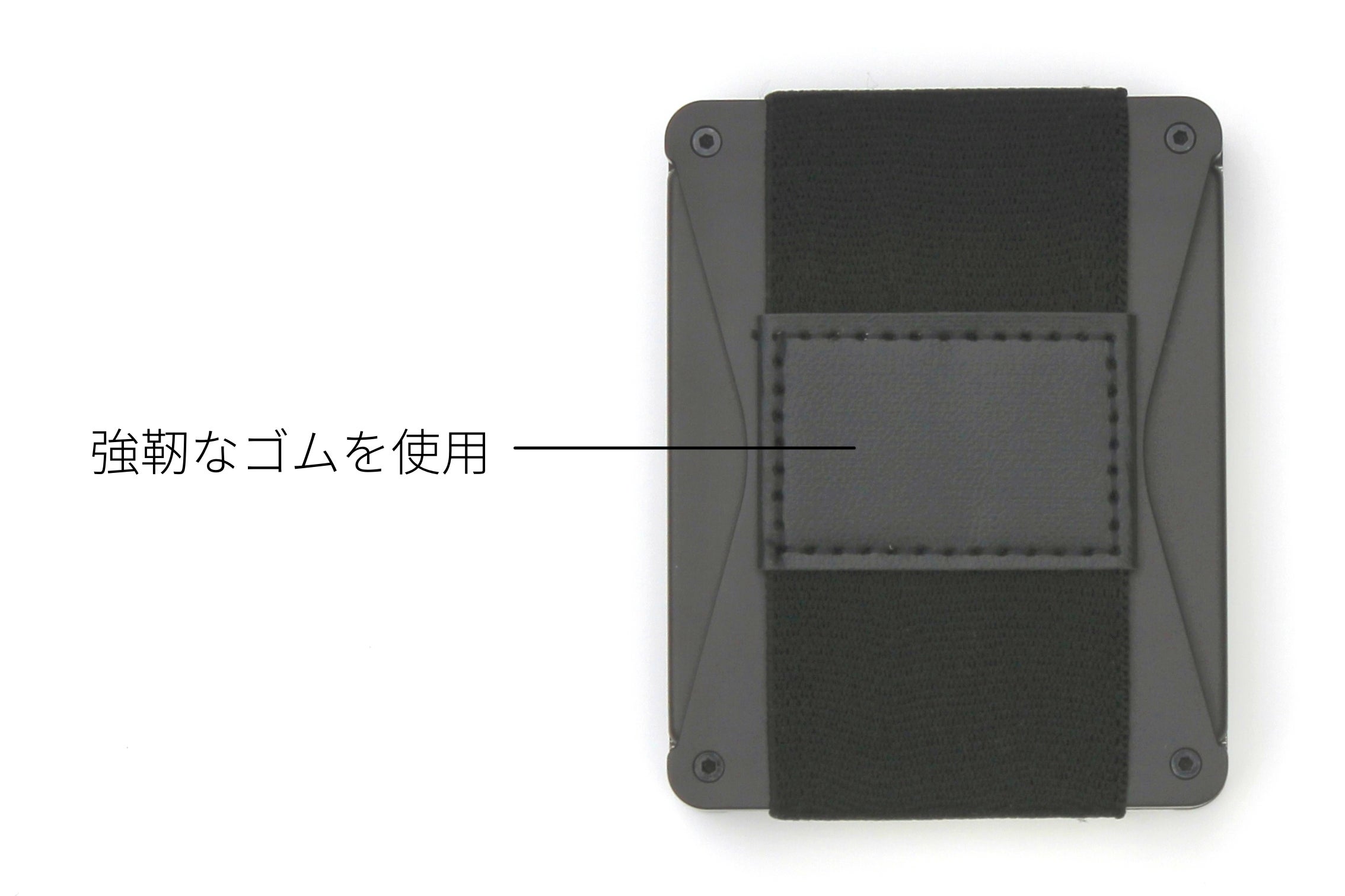 背面のゴムは超強力ゴムを使用。カードや紙幣以外のものを入れてもOKです。