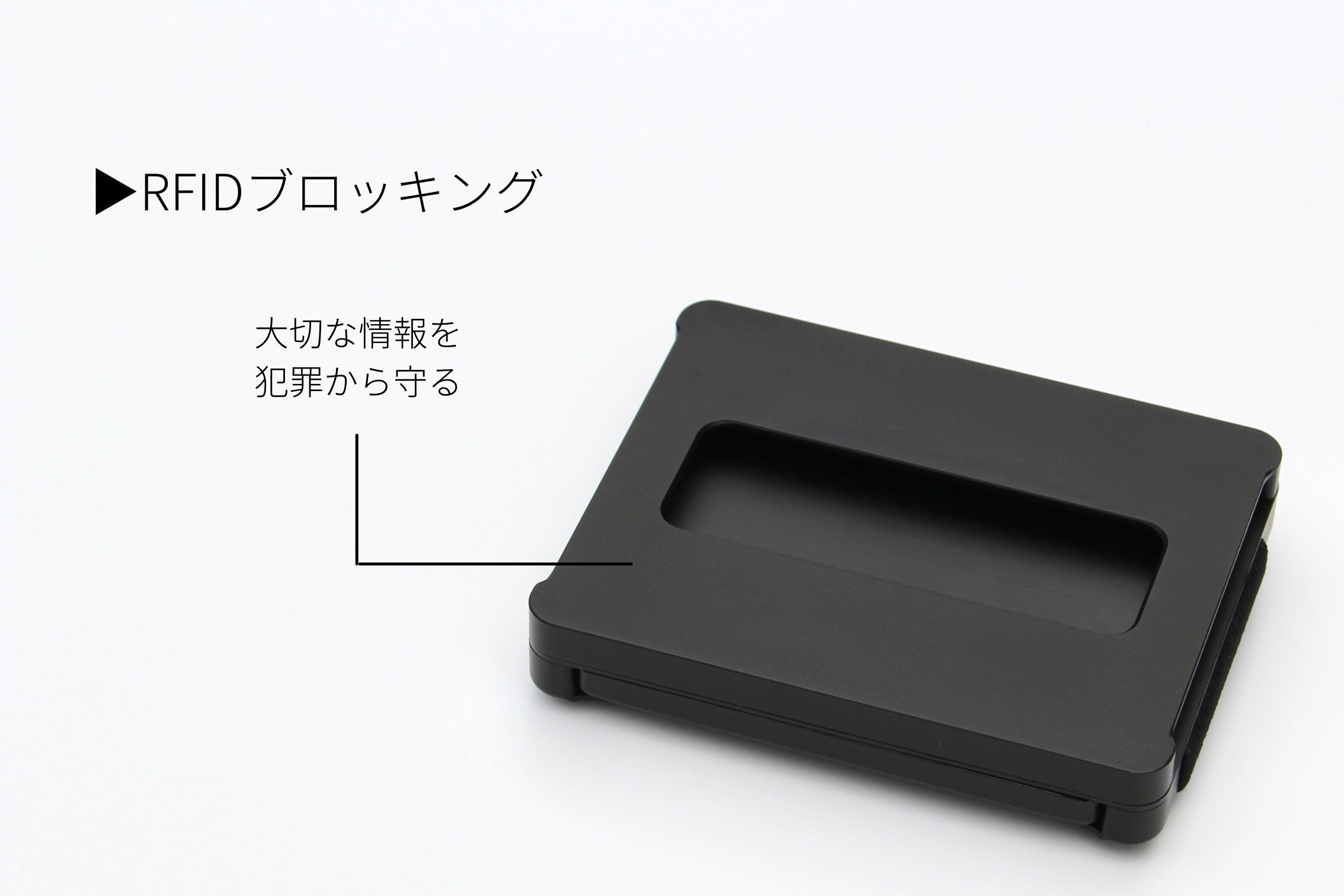 ボディはRFIDブロック加工されているので、あなたの大切な情報を不正なアクセスから守ります。