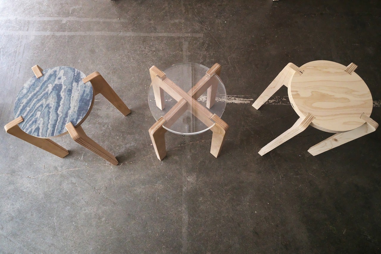 「一緒につくろう!」 を体験できる「プラモ家具3×6(サブロク)」は、3尺(90センチ)×6尺(180センチ)の板を「ショップボット」というコンピューター制御の木材加工機械で切り出した家具キットです。プラモデルのように、板からパーツを切り離して、紙やすりをかけ、塗装をして組み立てます。つくれる家具はテーブルやスツール、ソファ、その他新しい家具も絶賛開発中です。