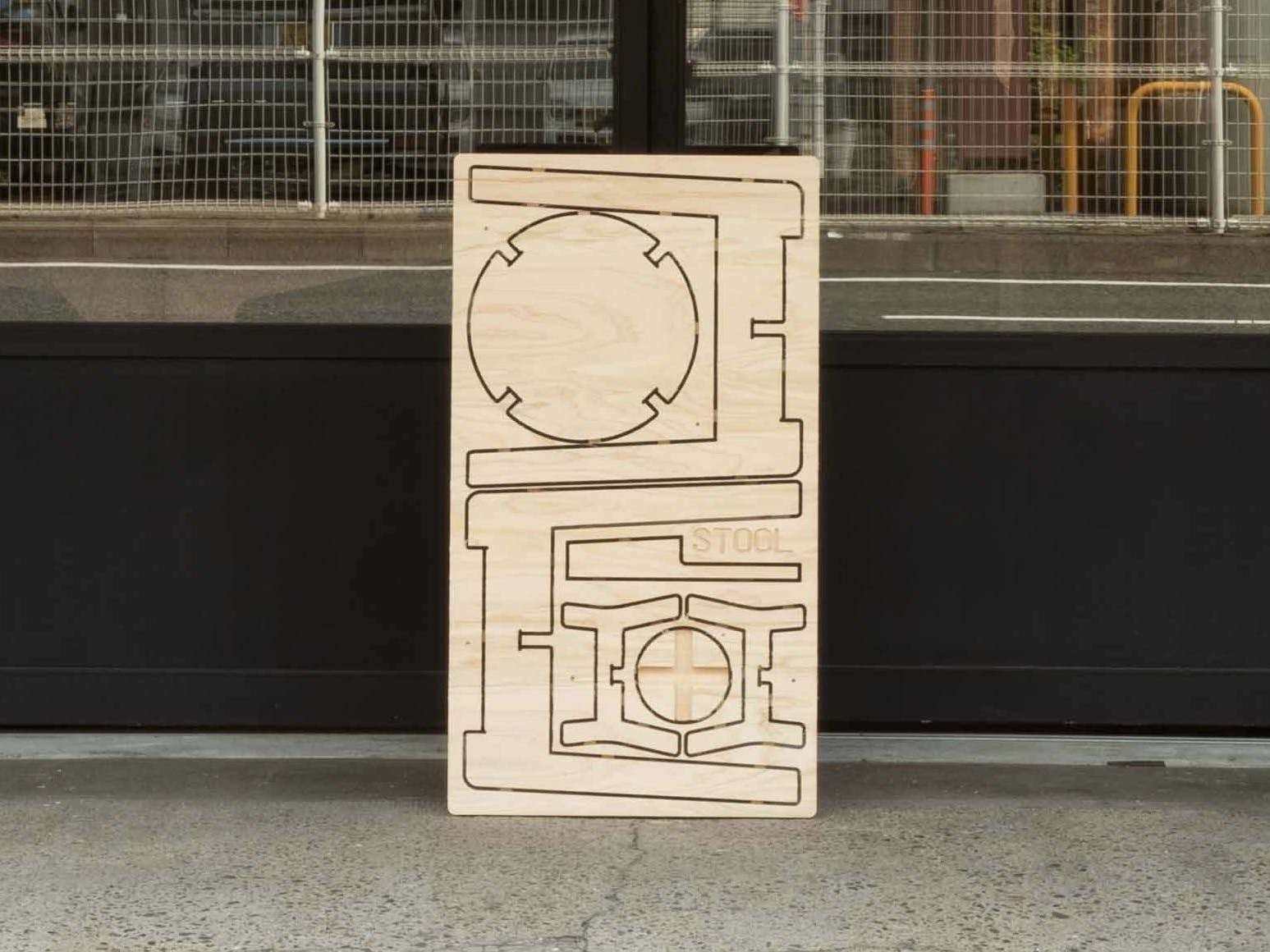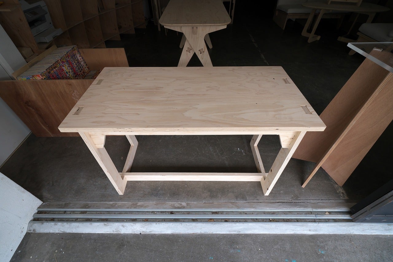 ▼これが「プラモ家具3×6(サブロク)」です。1枚の板からデスクとスツールができます。