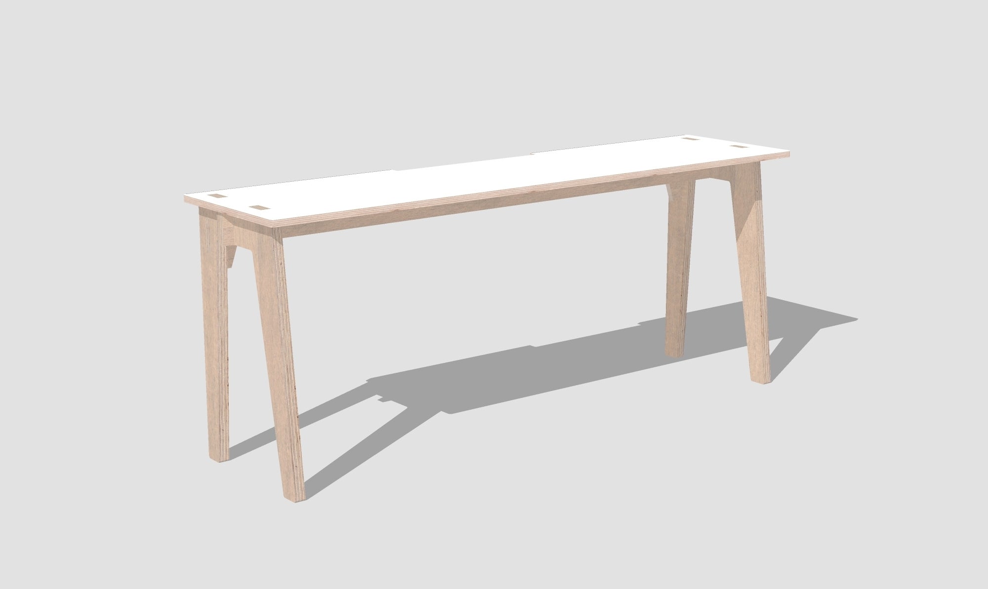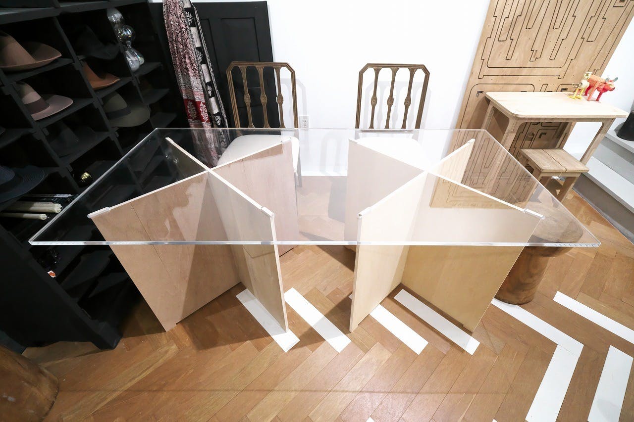 工事現場で大工さんが使っている作業台をモチーフにしたテーブル。イベントやショップ什器、ダイニングテーブルとしてもお使いいただけます。ラワン合板製とアクリル(透明)のものがあり、天板や脚を異種素材で組み合わせることができます。