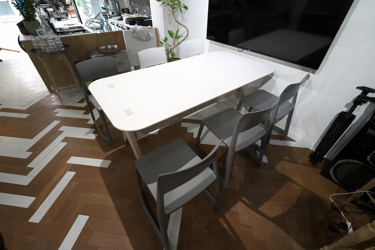 ブーメランの形状をモチーフとした脚が特徴的なデザインのテーブル。ダイニングだけでなく、ミーティングテーブルとしてもお使いいただけます。