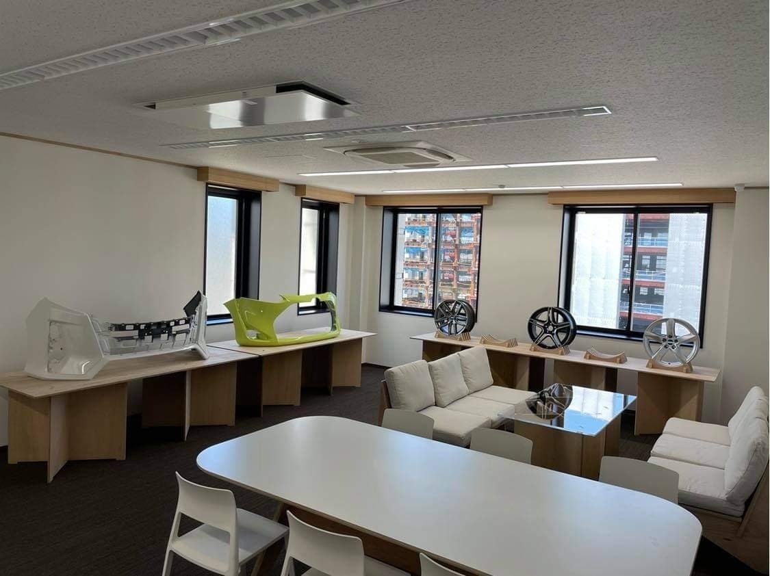 今回は車部品のディスプレイ用の台としてテーブルを設置し、他にもソファやソファテーブル、会議テーブルをまとめてご購入頂きました。