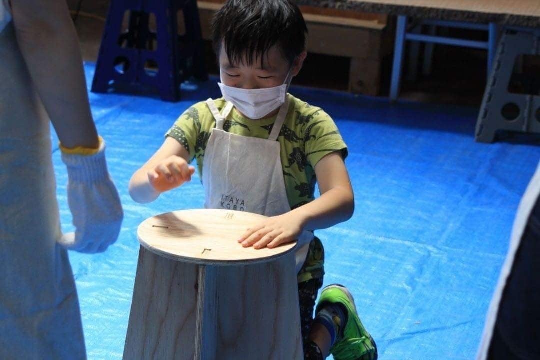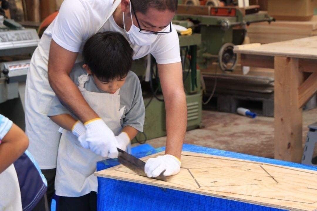 見た事ないくらい大きな木の板や、かっこいい機会、職人さんが使う道具などもおいていたので、参加した子供達の目がキラキラしていました!!(子供たちからしたら大冒険です)