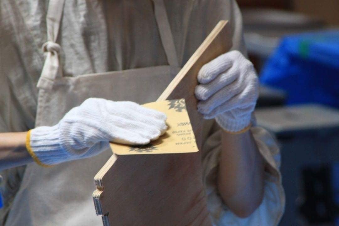 この工程は、実際に職人さんが家具を製作する際と同じ工程です。