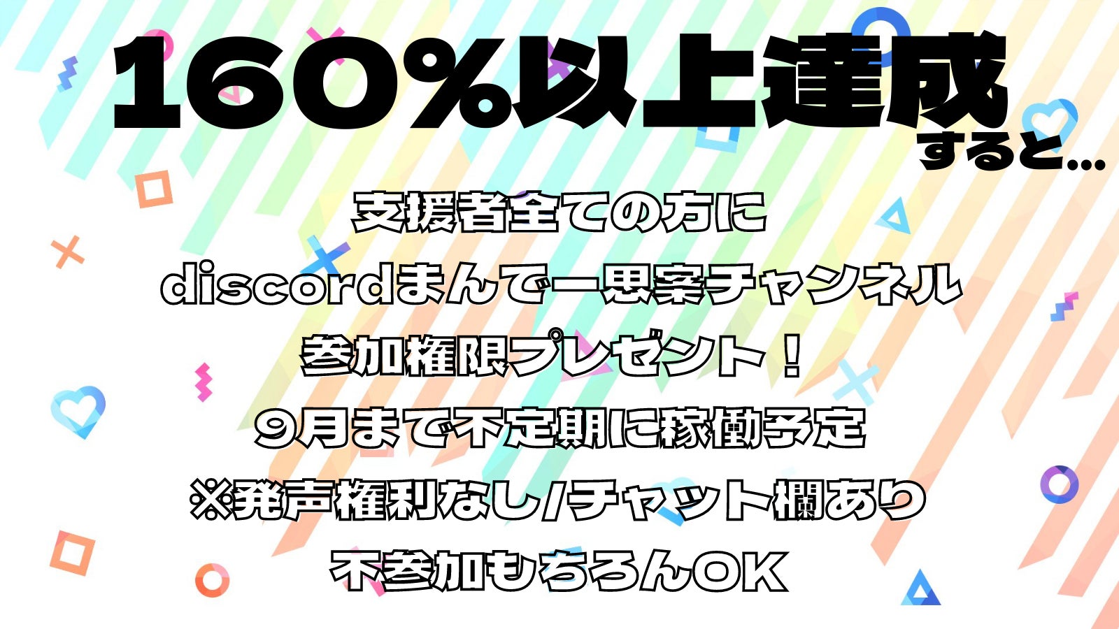 皆様おはまんでーでございます!この度25日に無事クラウドファンディングを終了致しました。本当に1ヶ月と少し、見守っていただいてありまんでーでございます…!感無量!お陰様で達成率177%…サイト手数料を抜いても21万5千円ものご支援を頂くことが決まりました!7月より本格的にリターンの発送などに力を注いでいきますのでお楽しみに待っていてくださいませ!また、Vroidお披露目LIVEは7/2(金)22:30-となっております!是非この日だけは足を運んでください!!!7/3までカウントダウンをし、勝手ながら自分の誕生日を新たなモデルで迎えたいと思っております!>>>LIVE<<<よろまんでーでございます!本当にありまんでーでございました!