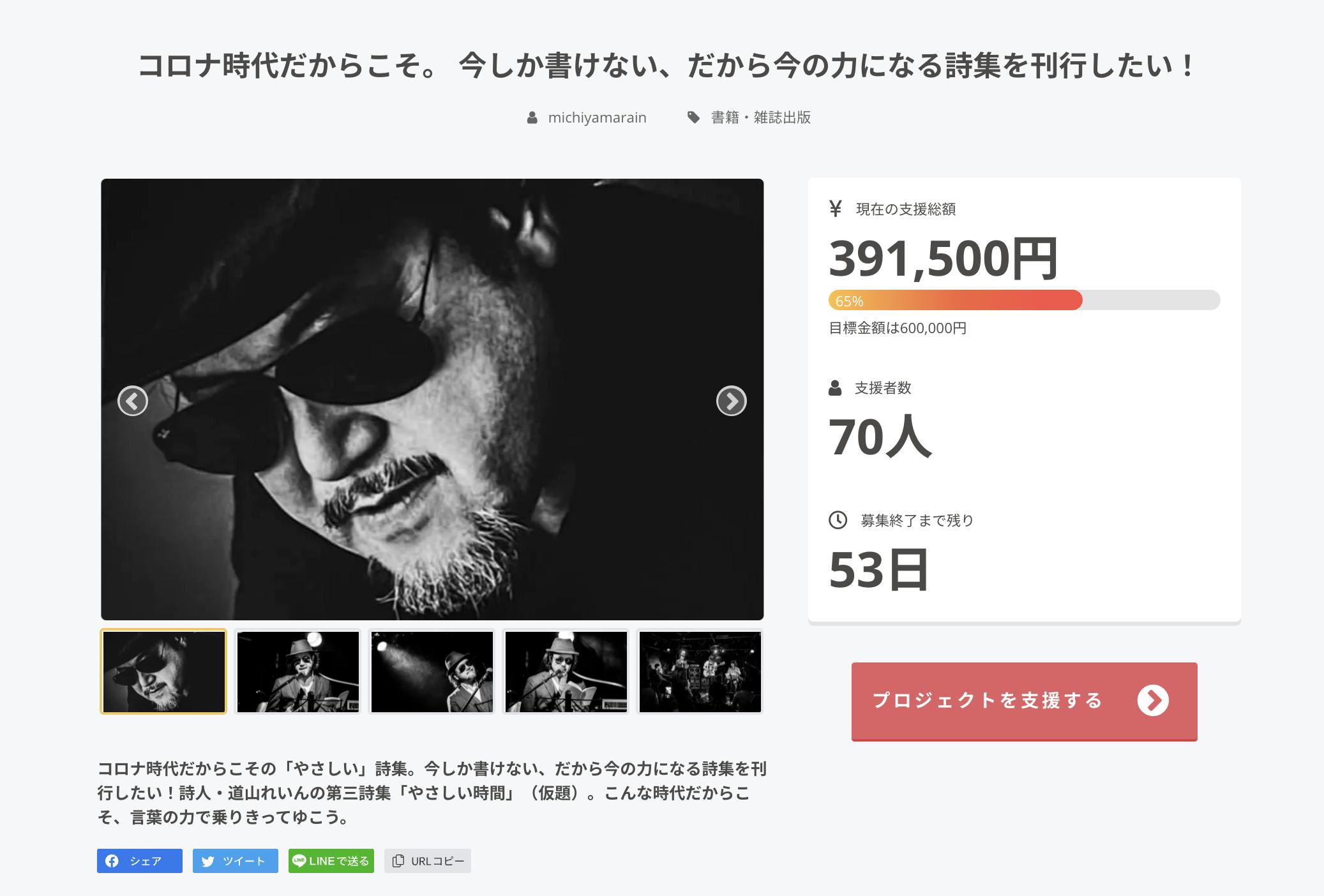 ぜひごいっしょに「今の力になる詩集」を世に問うクラウドファンディング、駆け抜けましょう。