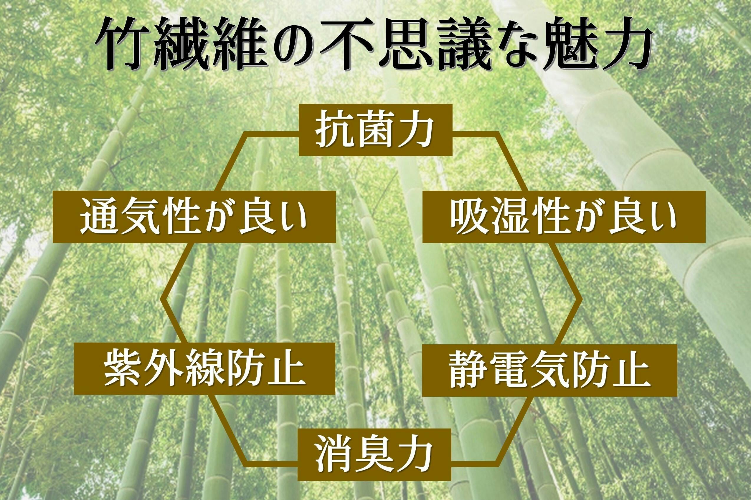 竹繊維は、天然の消臭効果にも優れていると言われています。その理由は、体臭の原因となるアンモニアガスの吸着除去と、ニオイの原因の増殖を抑えるだけでなくニオイの原因菌そのものを減らすことができるからです。そのため何度使ってもずっと清潔。