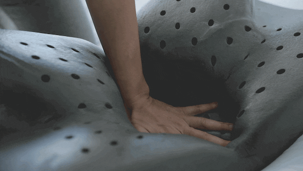 Air Vortex メッシュは、とても軽く透過性のある質感が特徴的です。多くの生地と異なり、緩く織られた布地でできており、何千もの小さな穴がメッシュ生地に空いています。非常に通気性がよく、枕に熱がこもらず快適です。