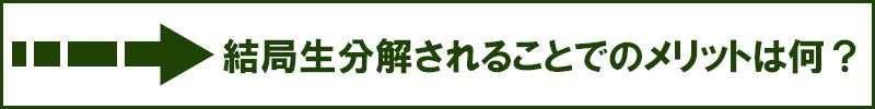 土の中(埋立地)で100%生分解されて、そのまま自然にかえる(溶け込んでいく)ことで