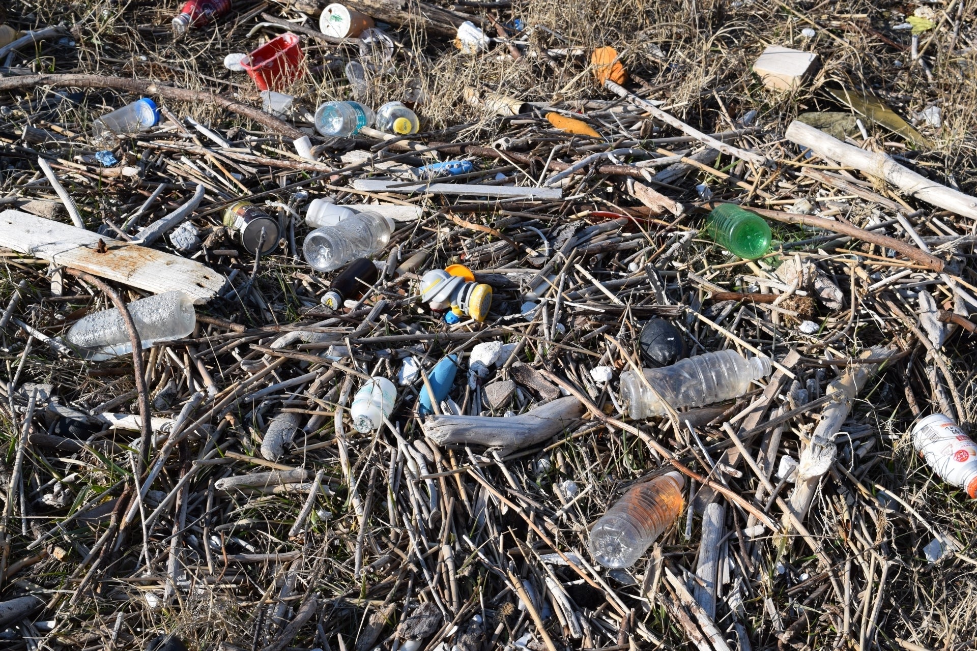 空き缶、ペットボトル、たばこの吸い殻、プラスチック容器、レジャーシート等々…