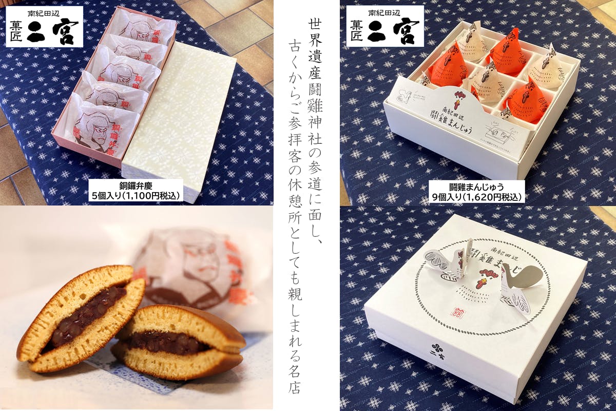 世界遺産鬪雞神社に参拝される方、そして地元の方々に古くから親しまれる二宮さんの美味しいお菓子。あなたも味わってみませんか?