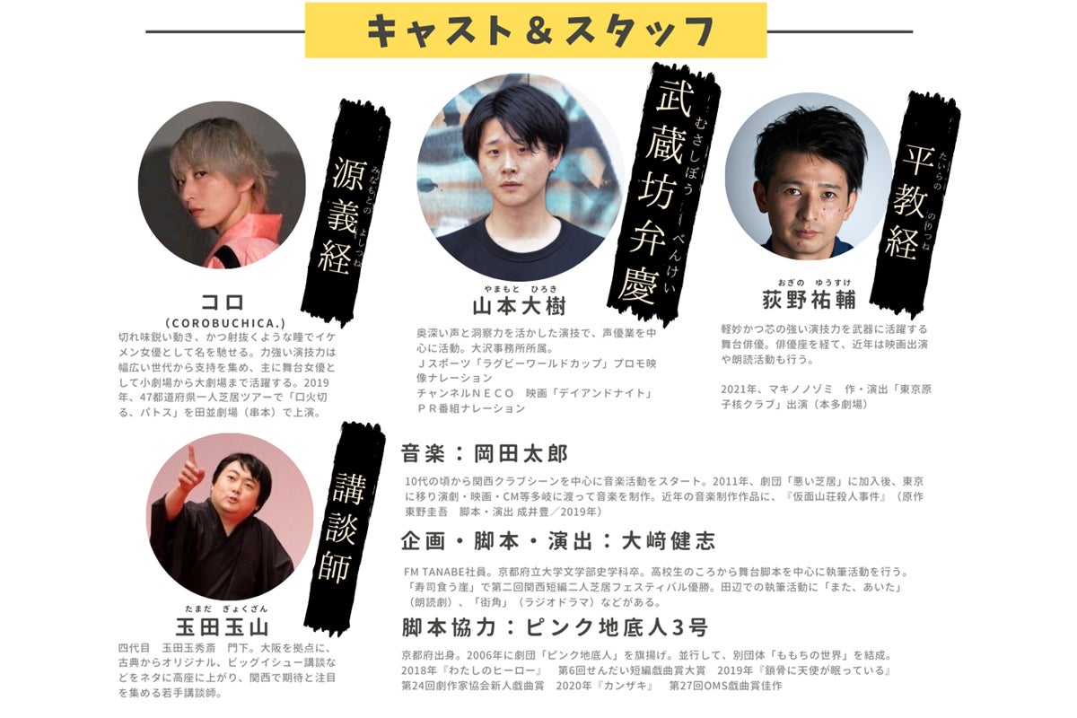 弁慶記の雰囲気を少し感じていただけると思います。編集途中の音声のみを一部切り取り公開しておりますのでBGM等はまだついていません、完成音源のご聴取は放送開始まで今しばらくお待ちください。