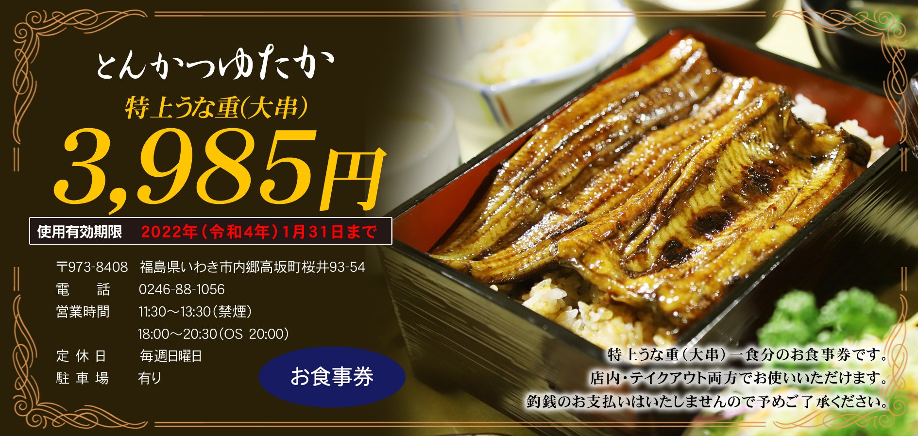 30,000円で特上うな重大串3,980円が10食分です。(専用券が10枚)