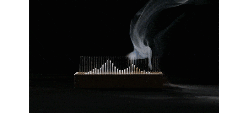 香炉の使用に伴い、見えない山がどんどん鮮明になっていく。誰もが心の中に見えない山を隠し持っている。お香を焚くように、心を込めて自分と向き合ってこそ、心の奥にある山が見えてくる。