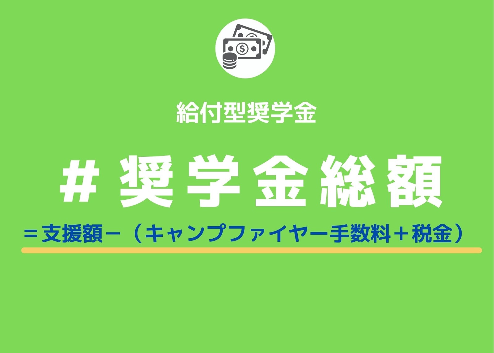 奨学金総額=支援金-キャンプファイヤー手数料-税金